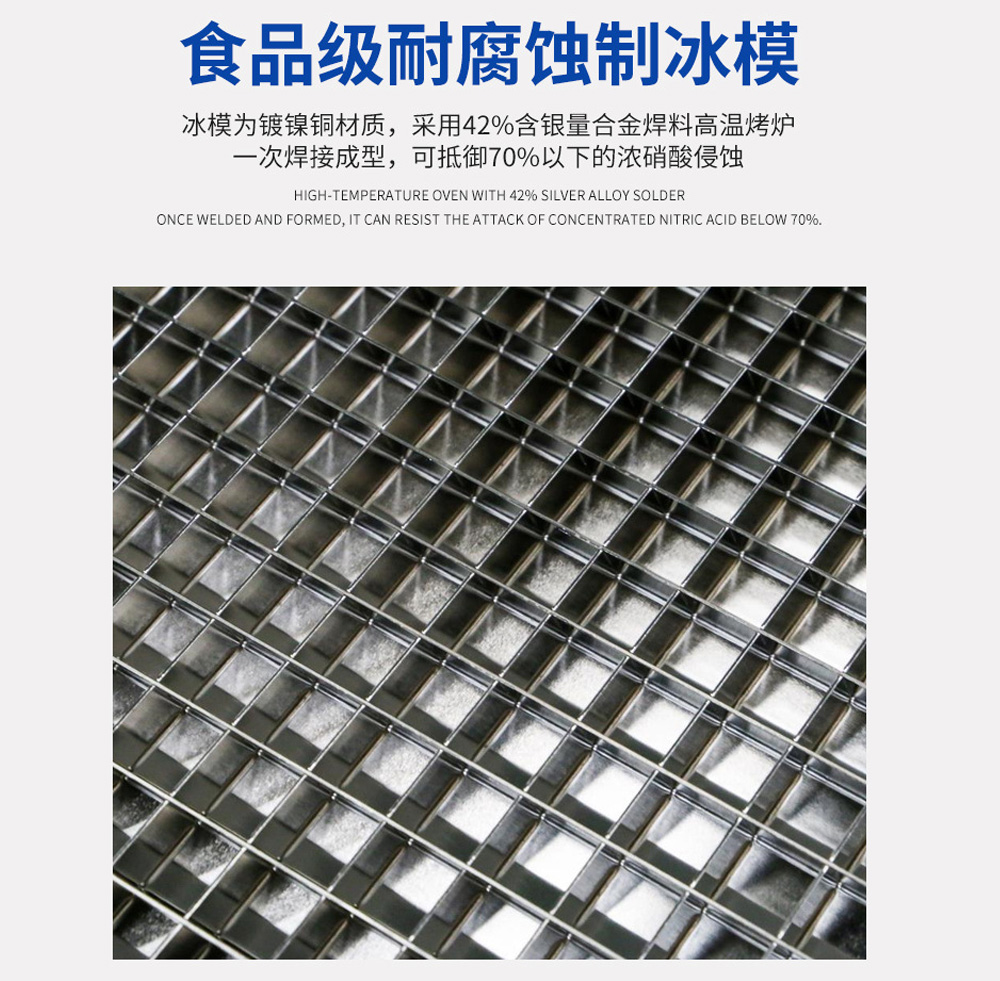 2、冰模采用鍍鎳銅材質(zhì),可抵御70%以下的濃硝酸侵蝕;