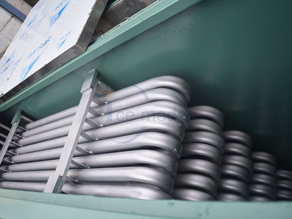 塊冰機(jī)又名冰磚機(jī),是制冰機(jī)中的一種,可分為直冷式塊冰機(jī)、鹽水式塊冰機(jī)、直冷集裝箱式塊冰機(jī)、鹽水制冰集裝箱式塊冰機(jī)。所制出的冰塊是冰類產(chǎn)品中外形尺寸大,與外界的接觸面積小,不容易融化??筛鶕?jù)不同要求粉碎成各種形式的冰塊。適用于冰雕、混凝土降溫、隧道降溫制冰機(jī)、冰塊儲存海運、海上捕撈等。 粉碎后可以用于所有用冰的場所。但冰經(jīng)過粉碎后,會部分融化,冰量損耗。冰塊可以分為透明冰塊、乳白色冰塊和彩色冰塊。塊冰的尺寸可根據(jù)冰桶的大小進(jìn)行定制。