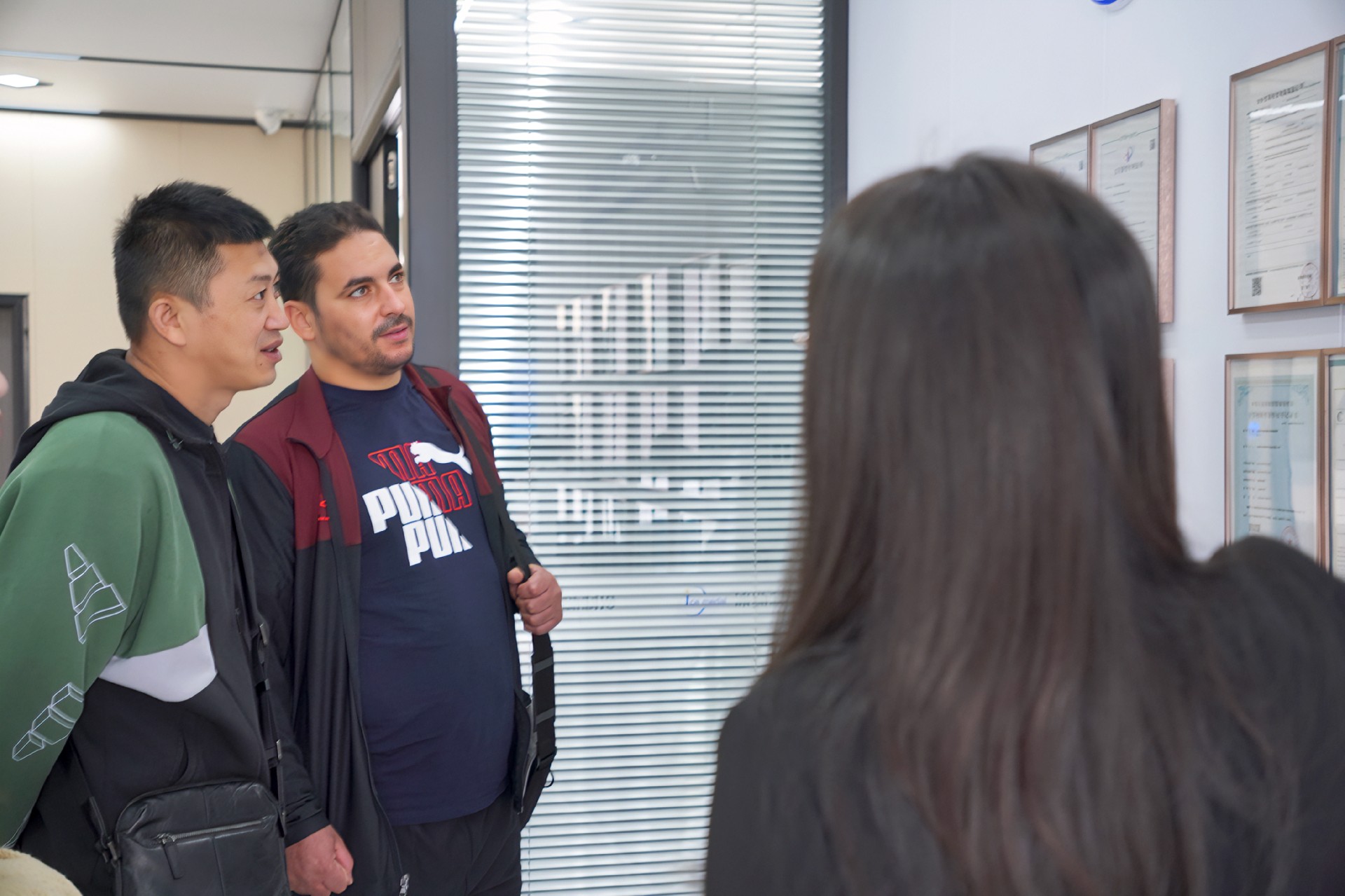 在冰勛制冷展廳,公司領(lǐng)相關(guān)負(fù)責(zé)人對(duì)阿爾及利亞客人一行進(jìn)行了熱情接待。在外貿(mào)總監(jiān)Iris的細(xì)致講解下,客戶一行對(duì)冰勛制冷的創(chuàng)業(yè)歷程、科技成果與公司產(chǎn)業(yè)鏈進(jìn)行了深入了解,并對(duì)冰勛制冷的綜合實(shí)力表示由衷的敬佩和贊賞。
